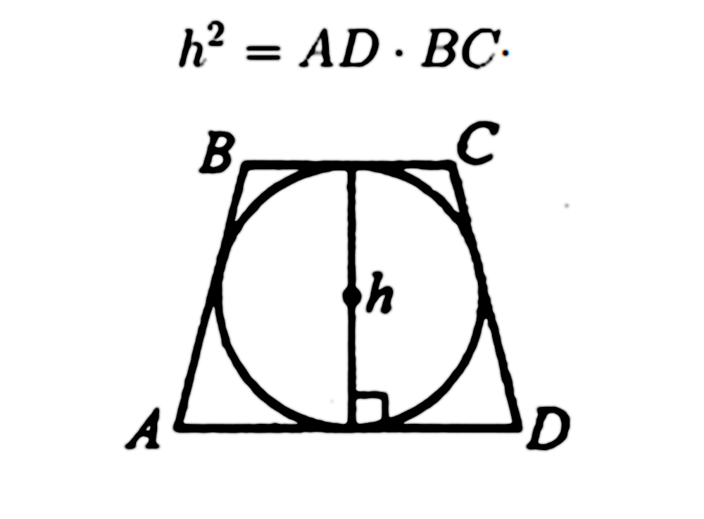 Існує правило: Якщо в рівнобедренну трапецію можна вписати коло, то квадрат висоти рівний добутку основ тапеції: h²= BC · AD. (див. малюнок)