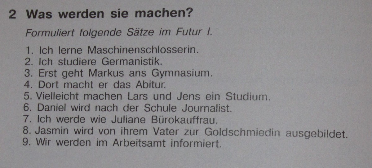 7. Ich werde wie Juliane Bürokauffrau werden.