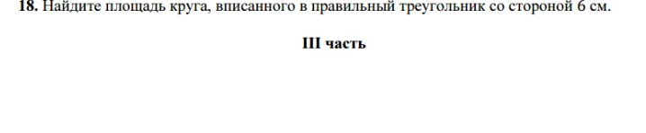 Радиус круга, вписанного в правильный треугольник со стороной а=6 см: