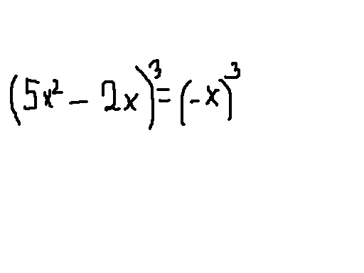 (5x^2-2x)^3=(-x)^3\ 5x^2-2x=-x\ 5x^2-2x+x=0\ 5x^2-x=0\ x(5x-1)=0\ x_1=0\x_2=0.2