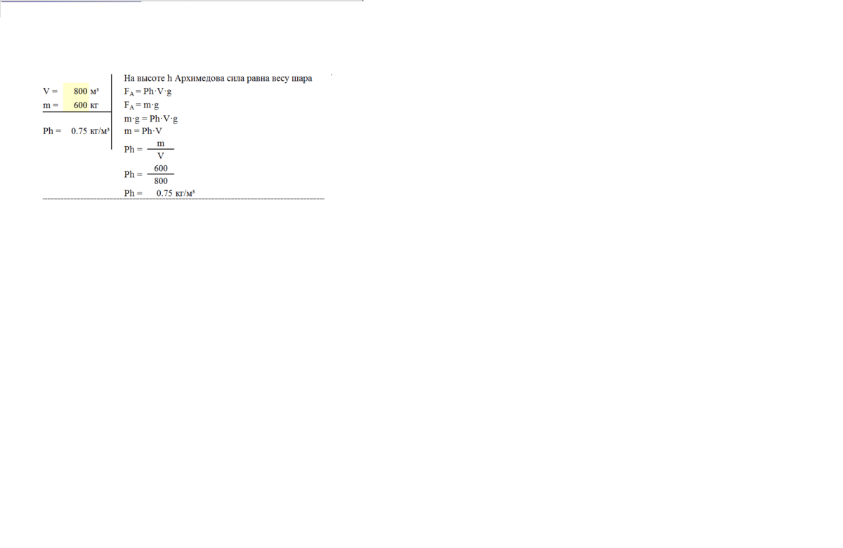 Воздушный шар массой 600 кг и обобьем 800 м3 поднялся на определенную высоту. Какова плотность воздуха на этой высоте