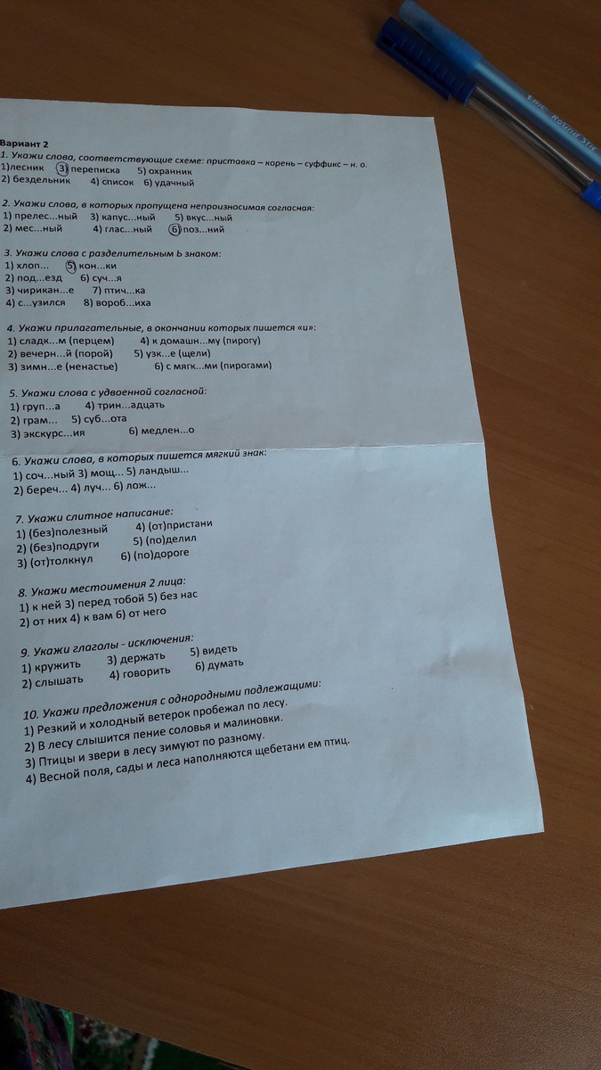 1) 2, 4, 5. 2) 1, 2, 3, 6. 3) 3, 6, 8. 4) 1, 5, 6. 5) 1, 2, 5, 6. 6) 2, 3, 6. 7) 1, 3, 5. 8) 3, 4. 9) 2, 3, 5. 10) 3, 4.