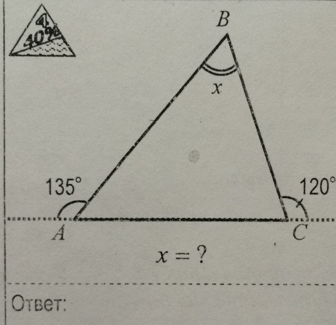 Очень простое задание.Плохо,что ты его не понимаешь.Тк.градусная мера развёрнутого угла равна 180 градусов,то угол А равен 180-135=45,угол С равен 180-120=60.