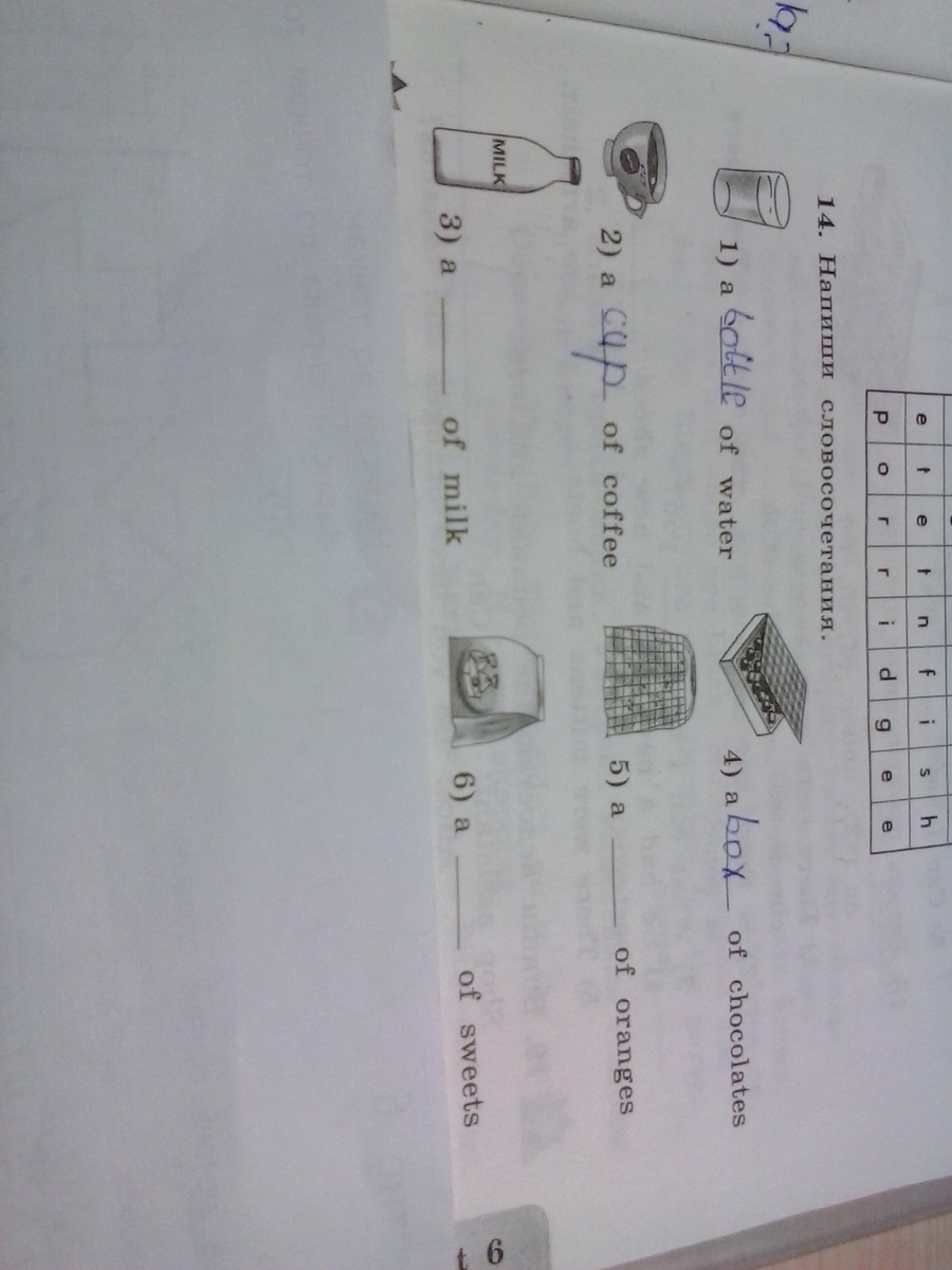 1)bottle 2)a cup 3) bank 4)bag 5) package