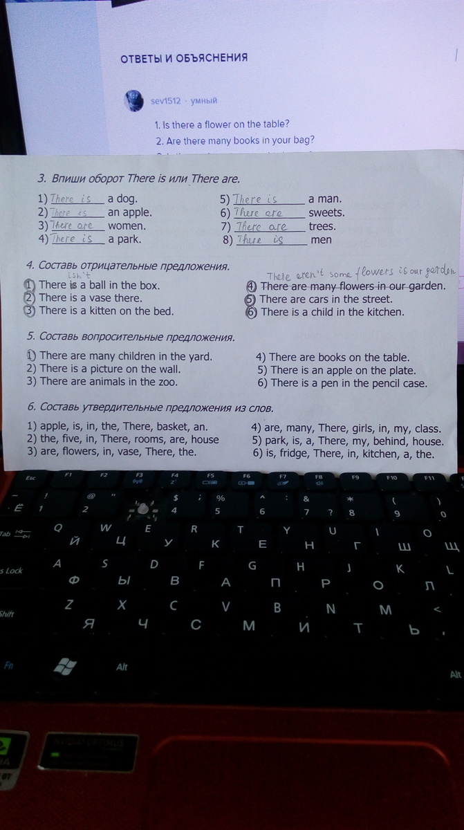 Для 5 задания поменяй are/is и there местами.