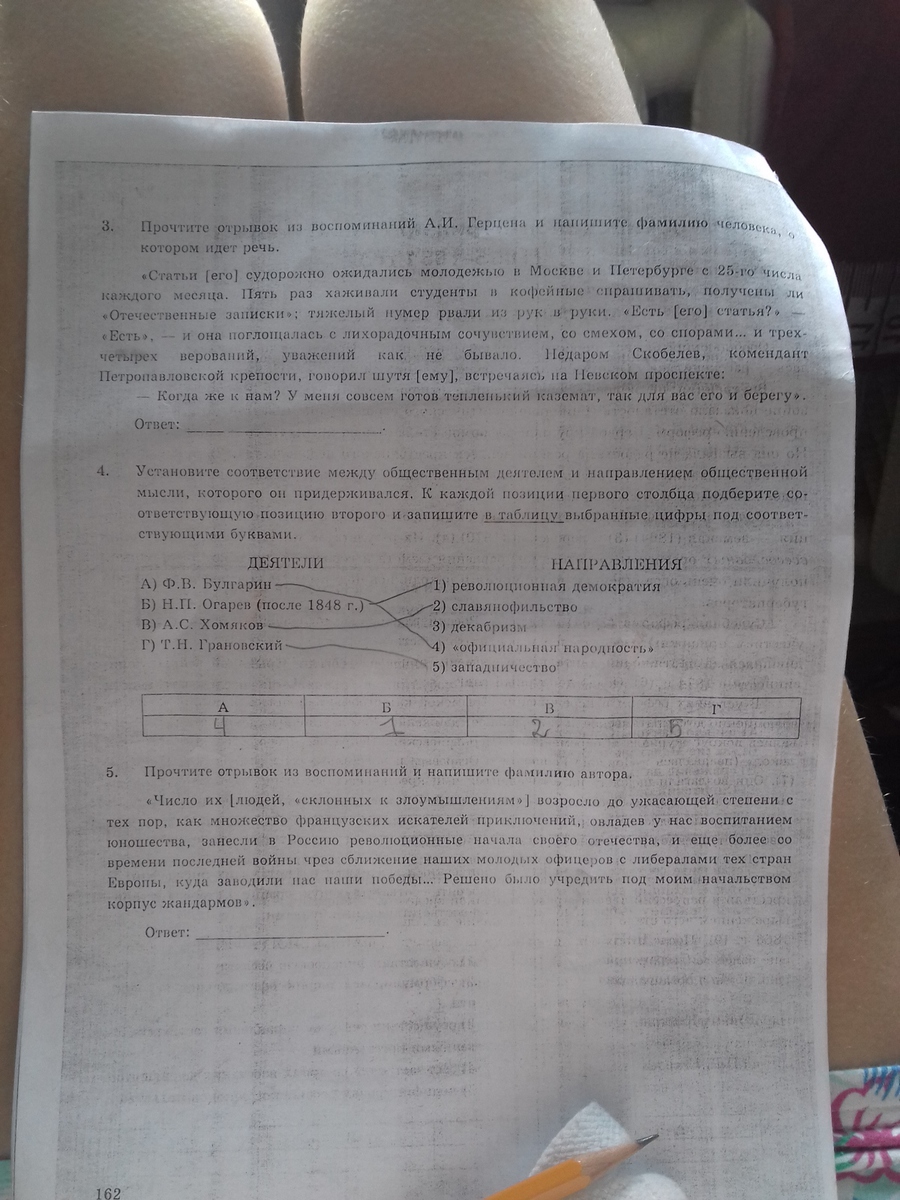 В 3 ответ Белинский, о нем рассуждал Герцен. В в 5 Бенкендорф