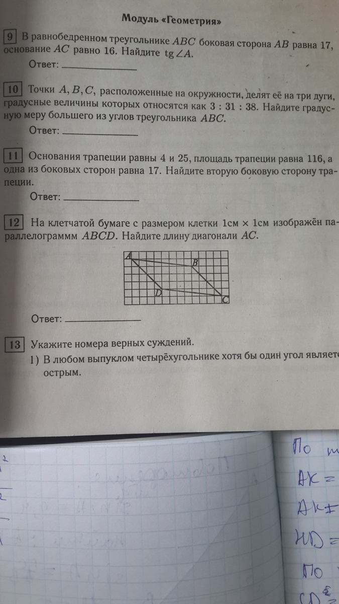 Дострой до прямоугольного треугольника АОС. АО=5, ОС=12