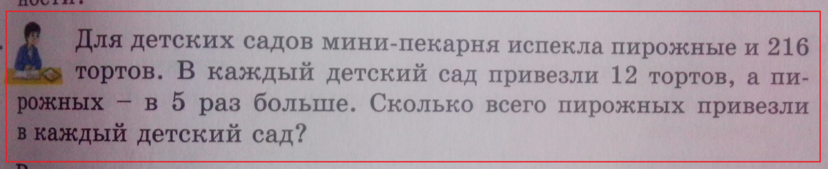 12*5=60 пирожных привезли в каждый д/сад<br />или<br />1)216:12=18 шт детских садов<br />2) 216*5:18=60 пирожн. в каждый д/сад