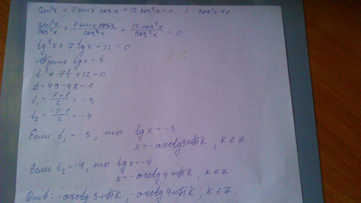 sin²x+7sin x cos x +12cos²x=0