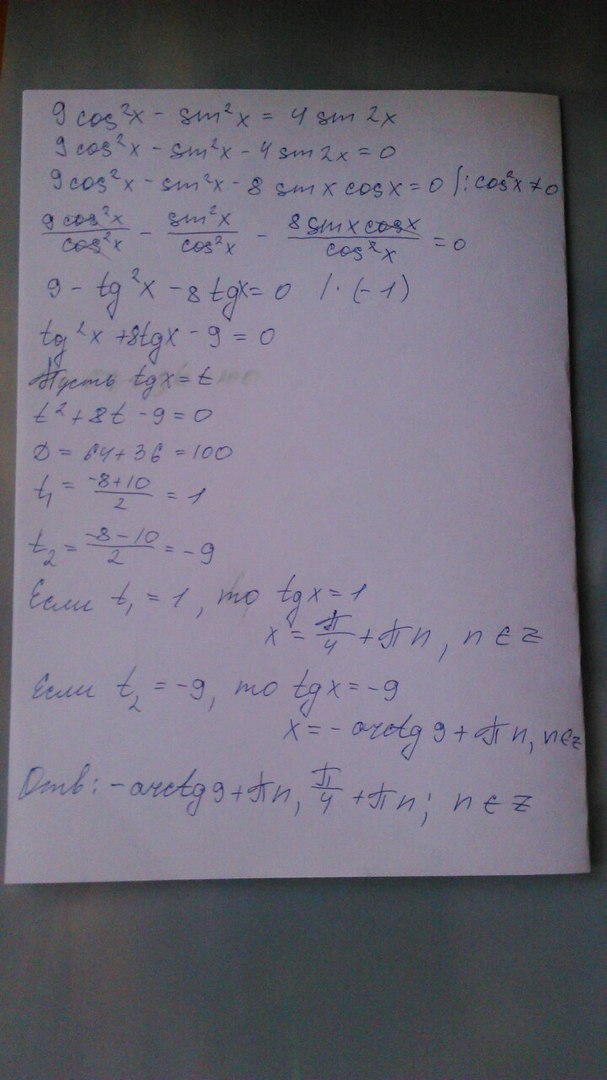 9 cos²x-sin²x=4sin2x