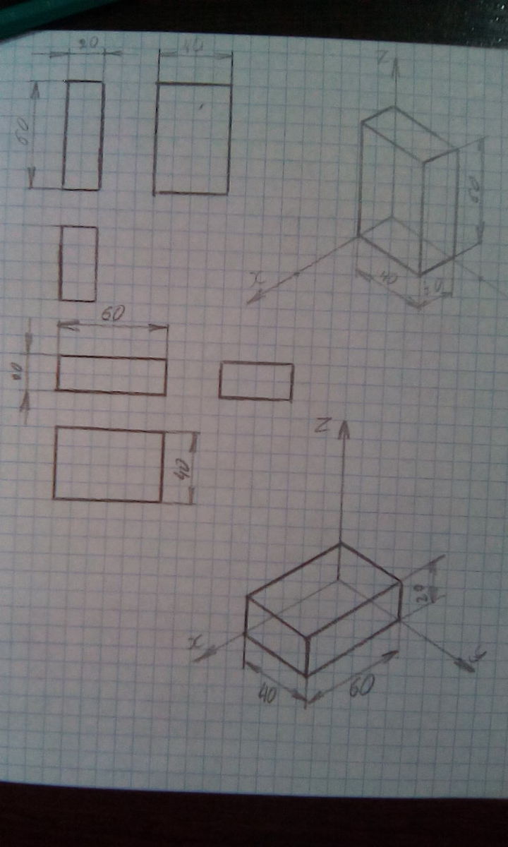 На чертеже три вида (Главный, сбоку и сверху), а также изометрическая (аксонометрическая) проекция, то есть 3D.