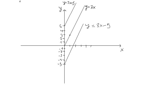 график y=3x-5 получается параллельным переносом графика y=3x на 3 единицы вниз см картинку