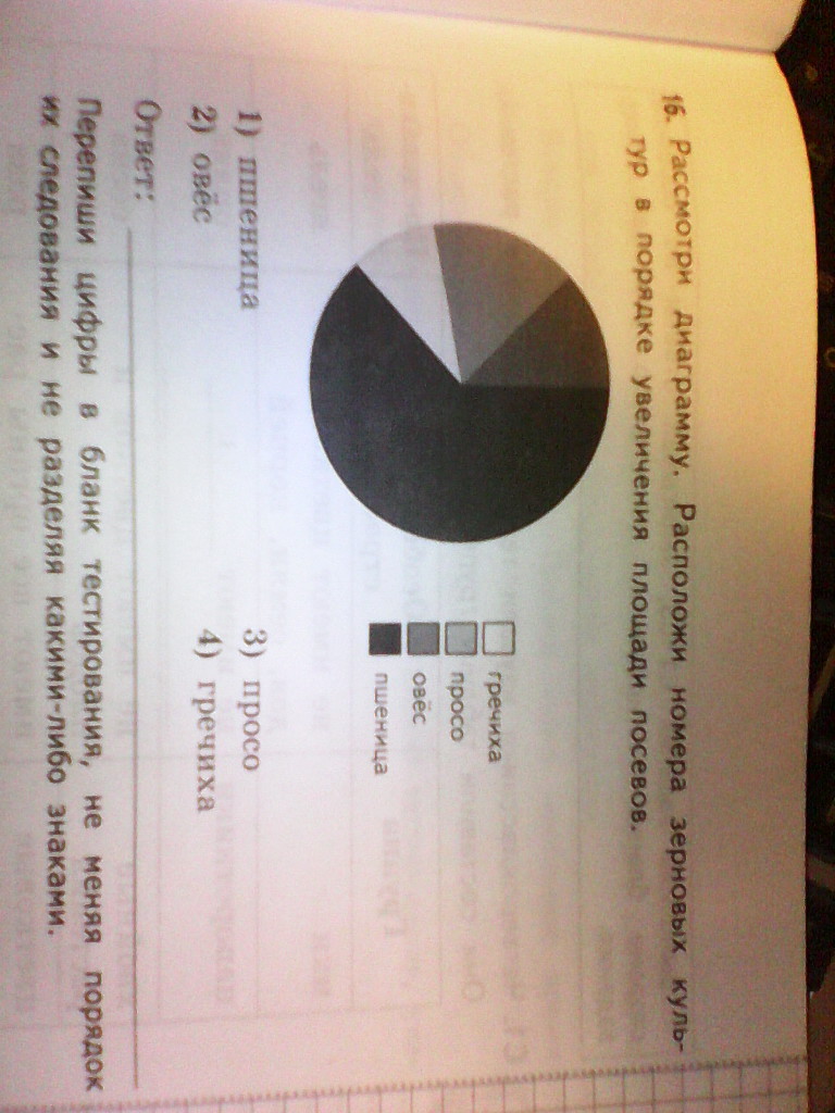 Рассмотри диаграму.Расположился номера зерновых культур в порядке увиличения площади посевов.