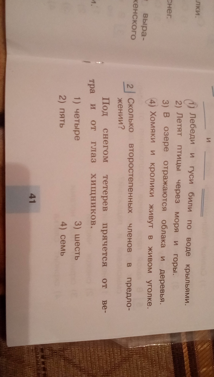 1)четыре : Прячется (под чем?) под снегом, прячется (от чего?) от ветра, прячется (от чего?) от глаз хищников , от глаз (чьих?) хищников.