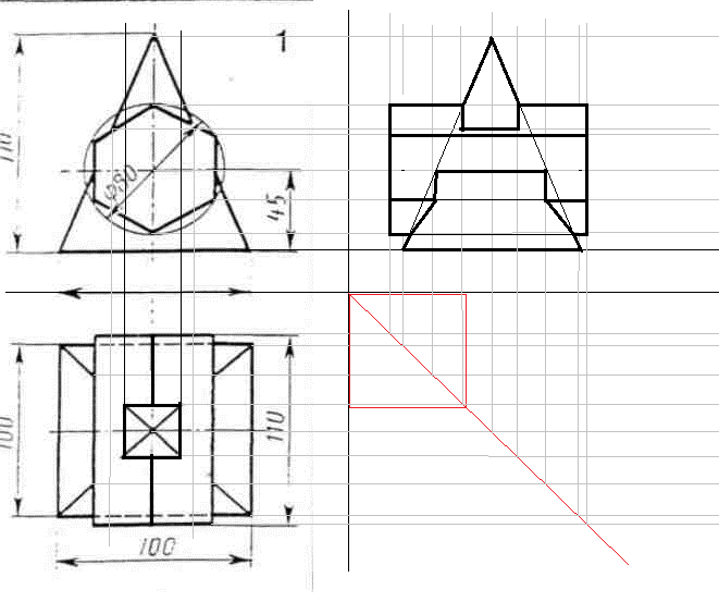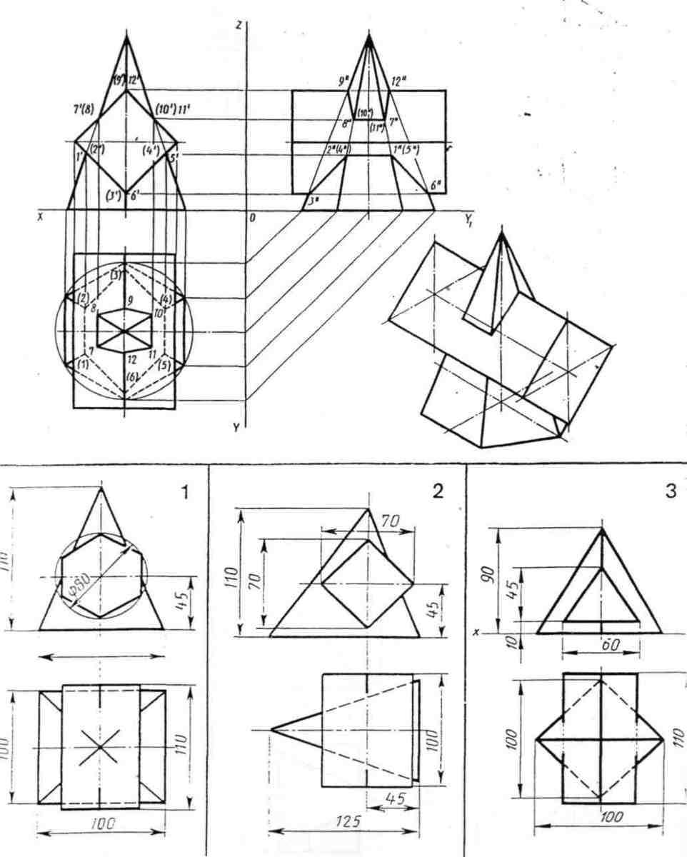 Начертите 3 проекцию, и покажите точки пересечения тел.