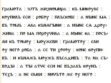 Рассмотрите новгородскую берестяную грамоту, написанную предположительно в 1100 - 1120 годах.