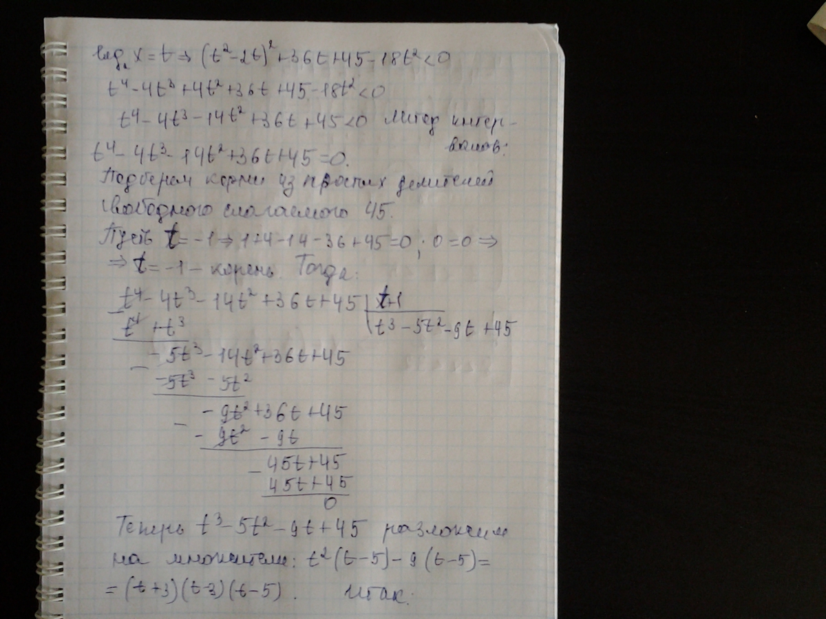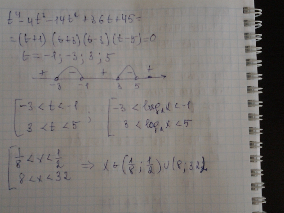 (log^{2} (2) x - 2log (2)x)^{2} + 36 log (2) x + 45 < 18 log^{2} 2x