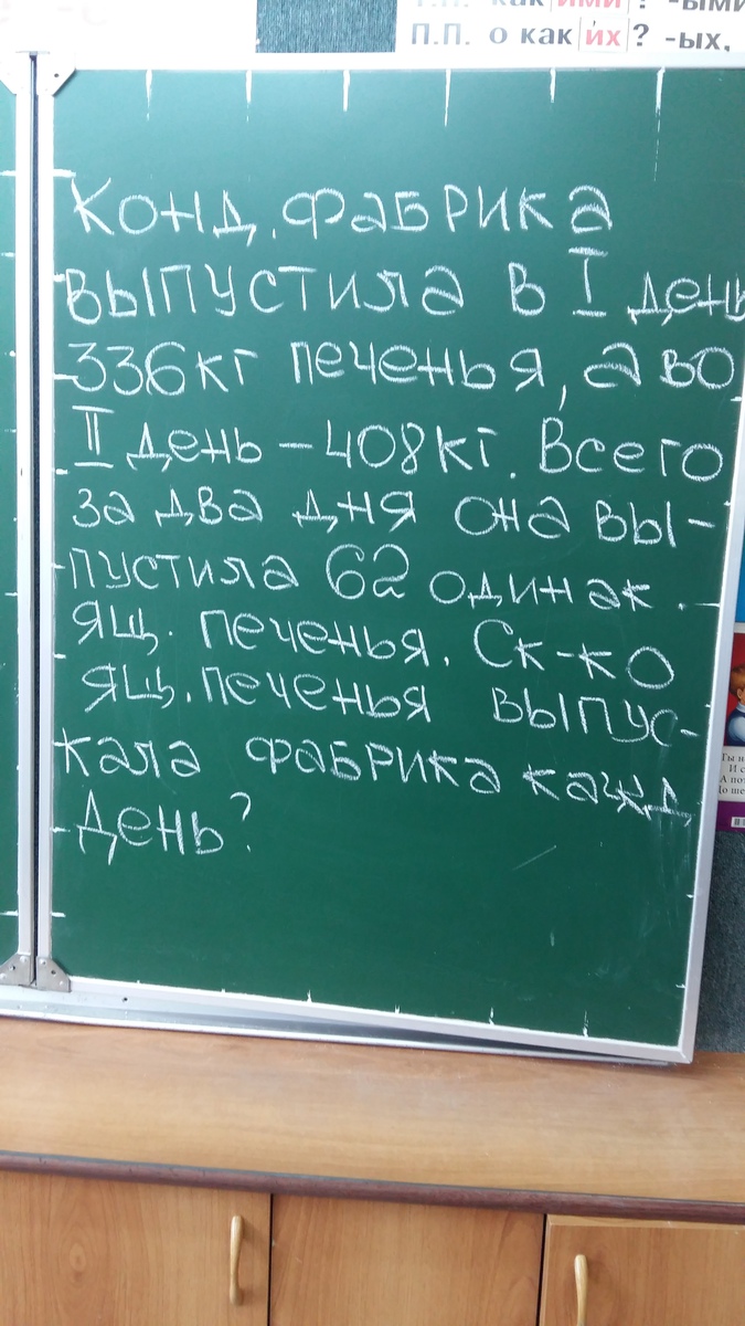 Для начала узнаём, сколько печенья фабрика выпустила за два дня: 336+408=744 (кг).