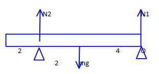 относительно точки вращения равна 0. Момент-это произведение силы на её плечо.Момент силы N1=0