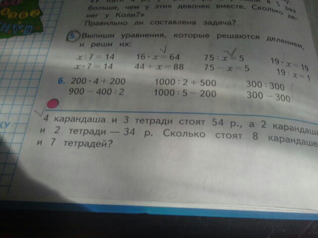 пусть карандаш стоит х рублей, тетрадь стоит а рублей