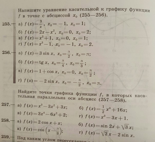 Помогите, пожалуйста, с алгеброй, 10 класс, производные. 255(бг),256(аг),257(аг),258(а)