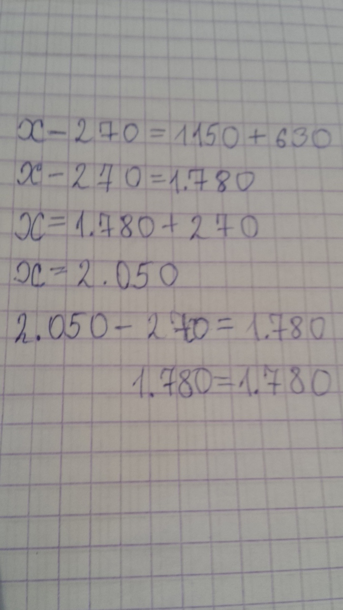 х - 270 = 1150 + 630