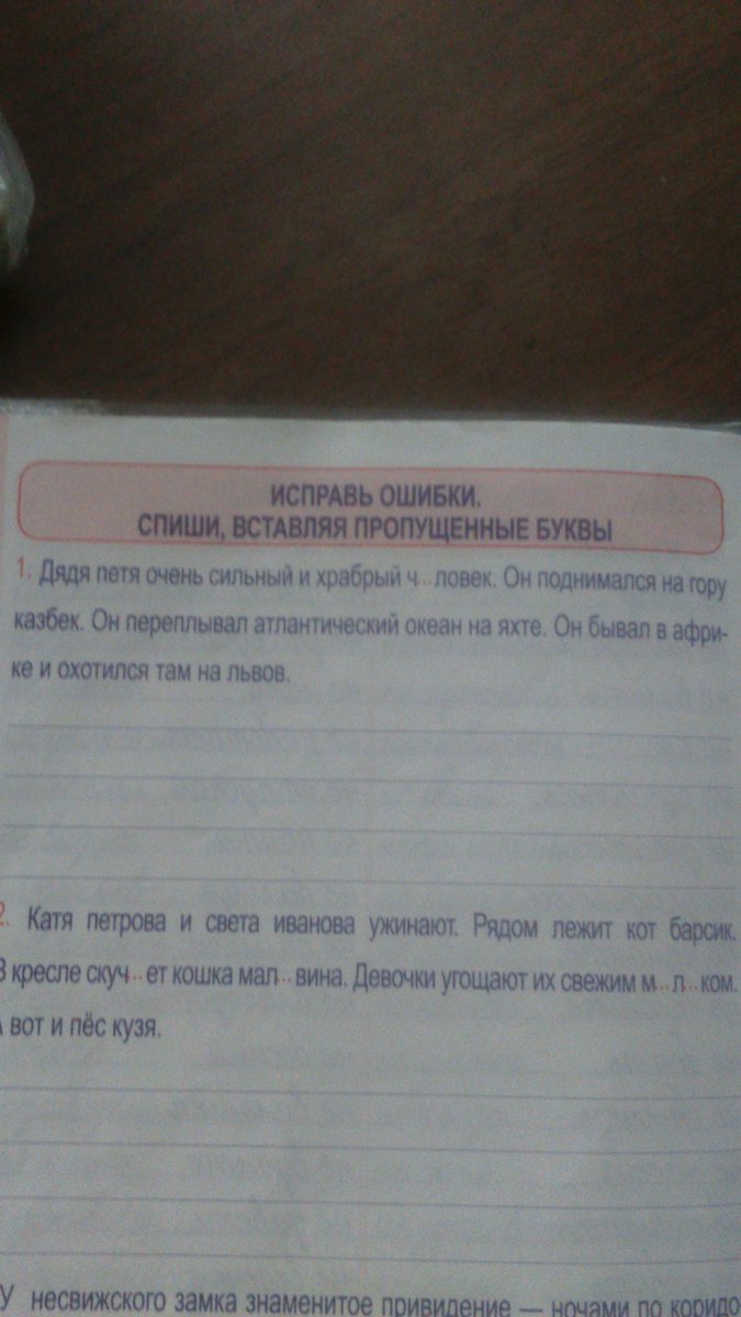 1.Дядя Петя - очень сильный и храбрый человек. Он поднимался на гору Казбек. Он переплывал Атлантический океан на яхте. Он бывал в Африке и охотился там на львов.