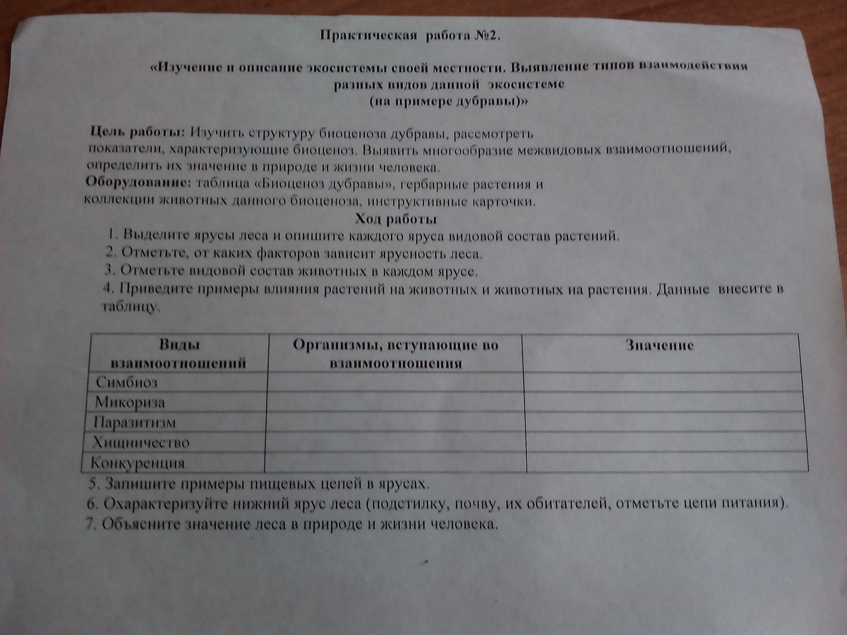 5. Конкуренция: борьба за свет между растениями разных ярусов (высокий дуб – низкий кустарник), конкуренция за пищу между хищниками и травоядными. Значение: контролирование численности животных для того, что бы количество живых организмов в сообществе было сбалансировано (удержание баланса рождаемости и гибели).