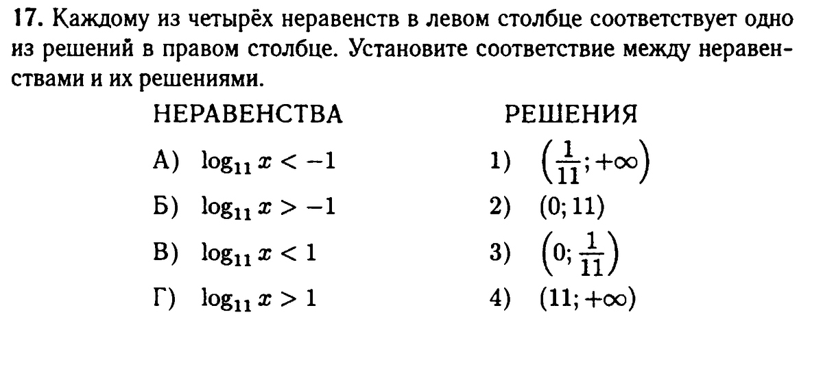 Итак: А↔ (0;1/11) , Б↔ (1/11;+∞), В↔(0;11), Г↔(11;+∞)