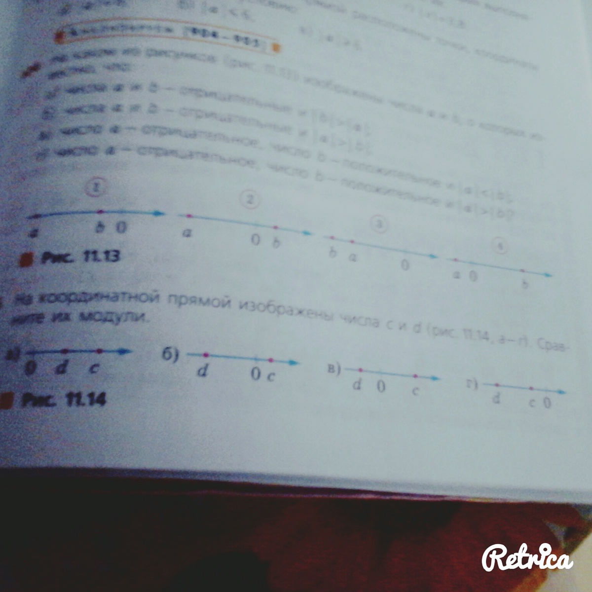 помогите срочно! !! На координатной прямой изображены числа c и d ( рис 11.4 , a-г ). Сравните их модули