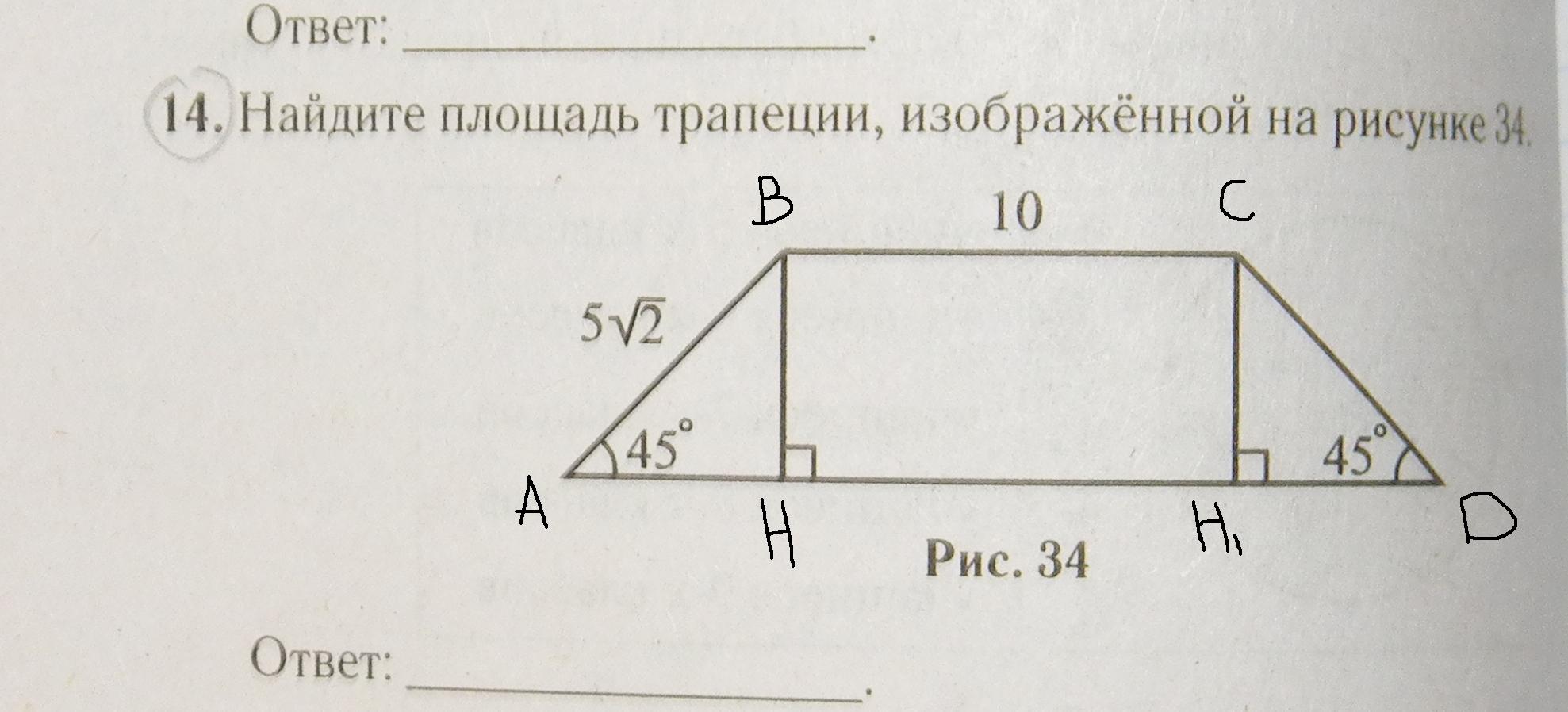 1. для начала найдем BH. Рассмотрим треугольник АВН: известно, что острый угол ВАН равен 45 градусов, значит на другой острый угол АВН приходится тоже 45 градусов, следовательно тругольник АВН-равнобедренный с основанием АВ, откуда ВН=АН, аналогично, что треугольник СН1В - равнобедернный