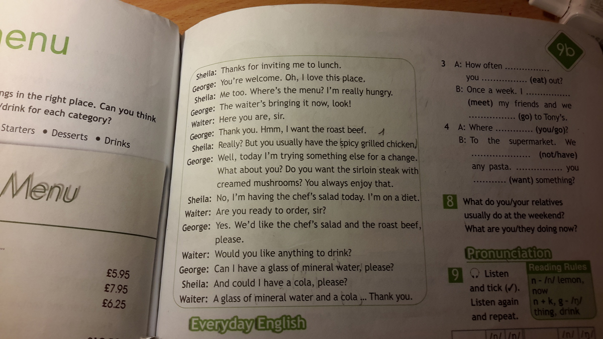 2. Да. Мы бы хотели салат и ростбиф, пожалуйста.