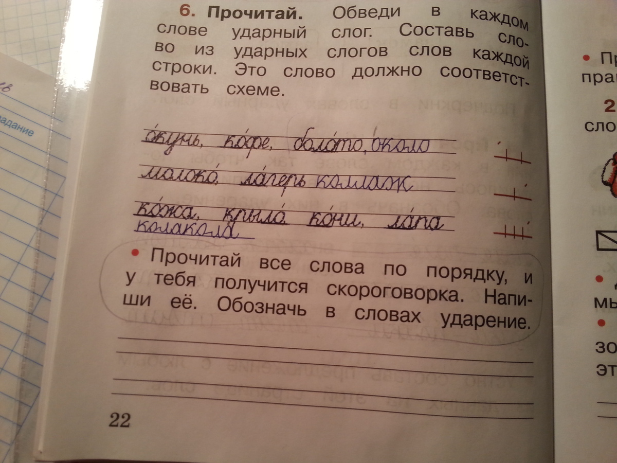 русский язык 1 класс канакина рабочая тетрадь стр 22 номер 6 помогите решить то что снизу