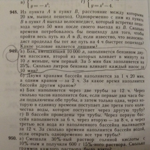 пусть первый насос накачивает х литров в минуту, тогда второй х-10 литров в минуту, а оба они х+х-10=2х-10 литров в минуту