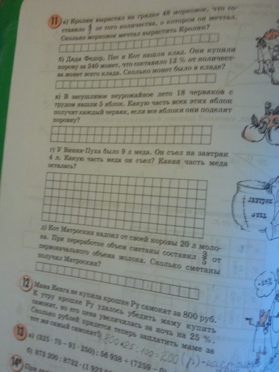 У винни пуха было 9 л мёда Он съел на завтрак 4 л Какую часть мёда он съел ? Какая часть осталась ?