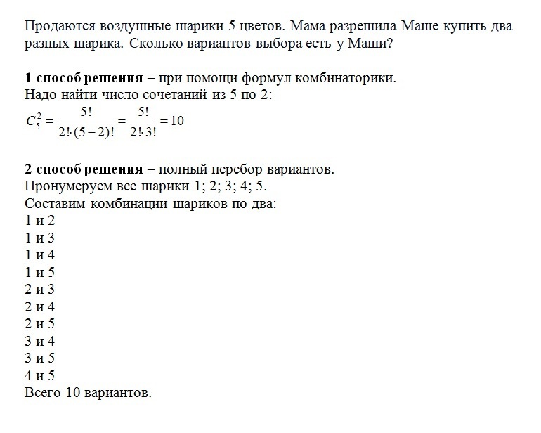 продаются воздушные шарики 5 цветов мама разрешила Маше купить два разных шарика сколько вариантов выбора есть у Маши