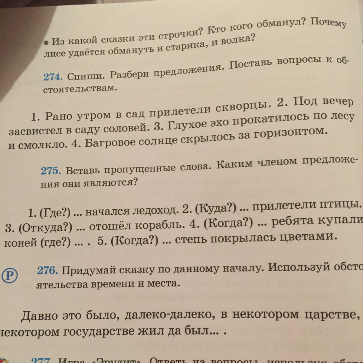 1.Рано утром(когда?) в сад(куда?) прилетели скворцы.