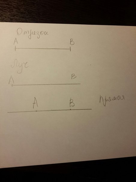 1 вот тебе отрезок; 2 вот тебе луч; 3 вот тебе прямая!!!