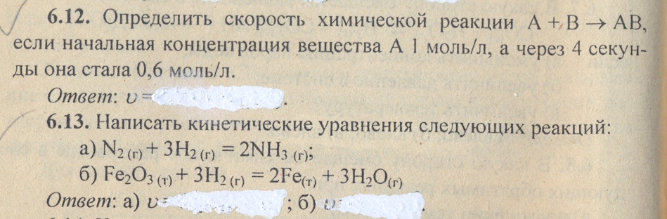 Fe2O3+3H2=2Fe+3H2O V=k[H2]³ Fe3O3 -твёрдое вещество на скорость реакции не оказывает влияния.