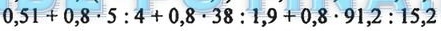 0,51+0,8*5:4+0,8*38:1,9+0,8*91,2:15,2=0,51+1+16+4,8=22,31