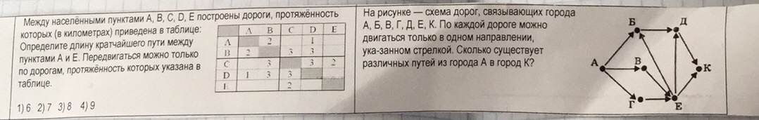 Определите длину кратчайшего пути между пунктами А и Е ... Задание на фото
