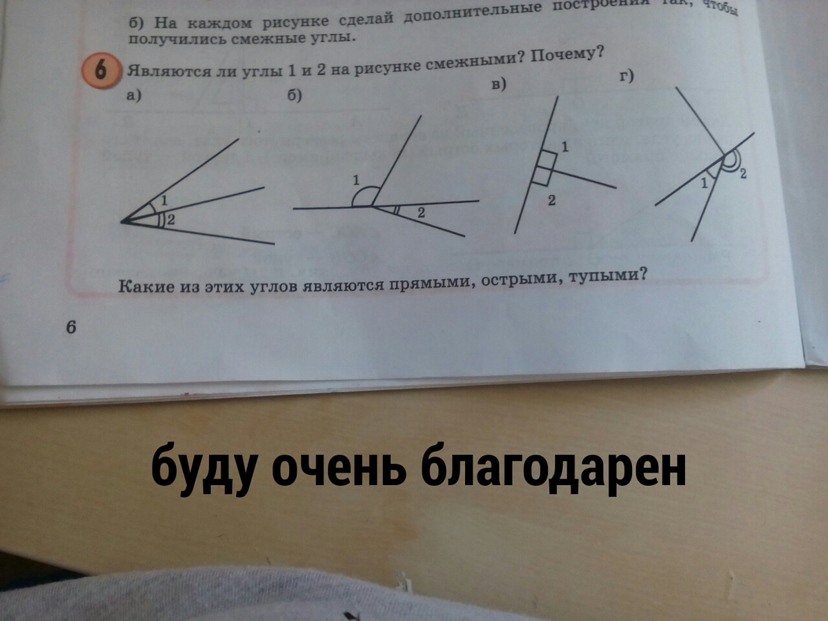 а) Углы 1 и 2 не являются смежными, так как смежные углы образуют развернутый угол (180 градусов); Оба угла являются острыми( градусная мера меньше 90)