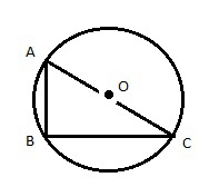 Центр (точка О) описанной вокруг прямоугольного треугольника окружности лежит на середине гипотенузы (АС)