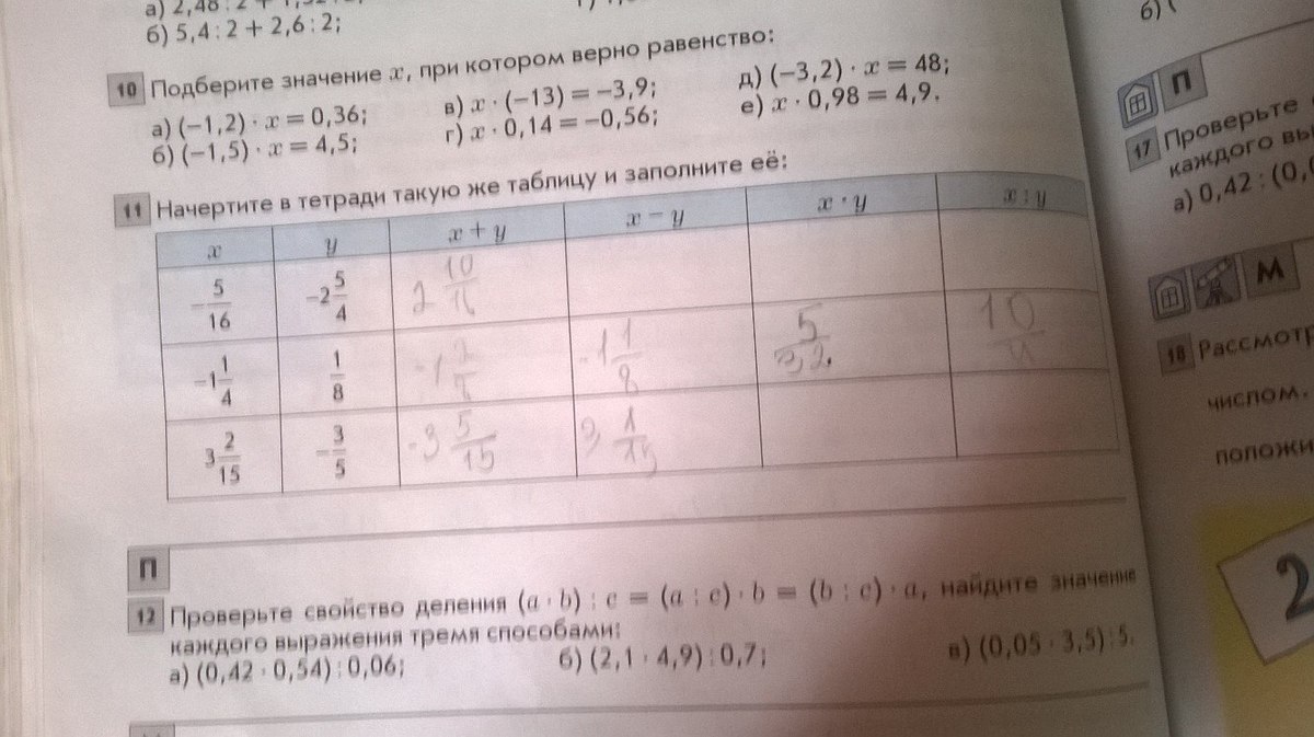 -5/16 и -2 5/4, вначале -2 5/4 переводим в дробь -2 5/4 = -(2х4+5)/4= -13/4. теперь имеем -5/16 и -13/4 работать с ними пока еще сложно, нужно привести к общему знаменателю, них это будет 16 (делиться и на 16 и на 4). В первой он и так 16. а во второй 4, значит нужно числитель и знаменатель умножить на 4, получим -52/16. Теперь начинаем заполнять таблицу: