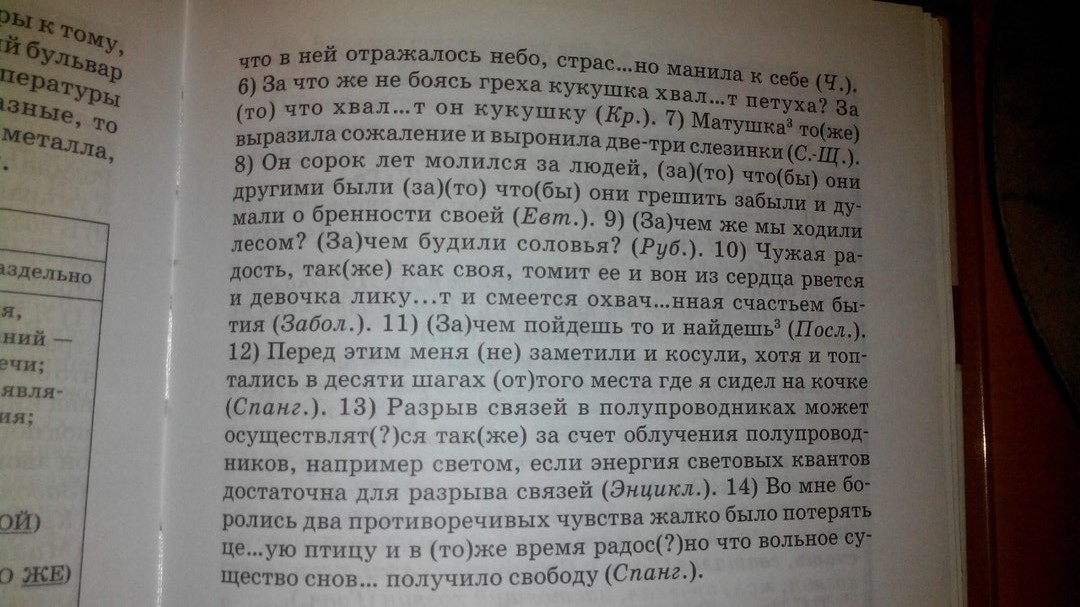 13. Разрыв связей может осуществляться также за счет облучения полупроводников, например, светом, если энергия световых квантов достаточна для разрыва связей. 14. Во мне боролись два противоречивых чувства : жалко было потерять целую птицу и в то же время радостно ,что вольное существо снова получило свободу.