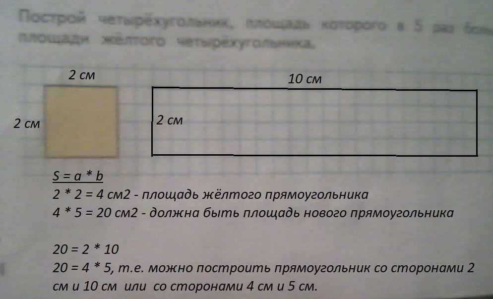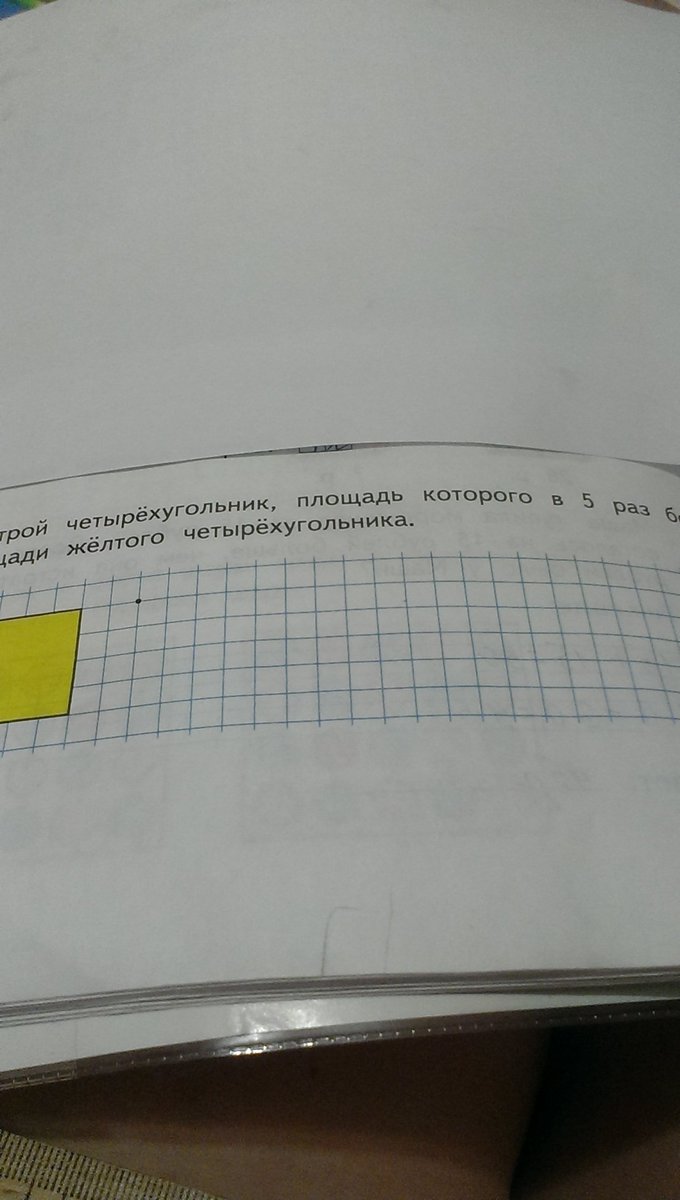 построй четырехугольник ,площадь которого в 5раз больше площади желтого четырехугольника.
