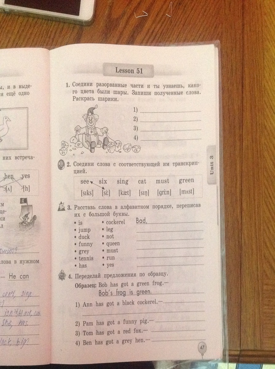 3.Bad,Cockerel,Duck,Funny,Green,Grey,Jump,Has,Is,Jump,Leg,Must,Not,Queen,Run,Tennis,Yes.