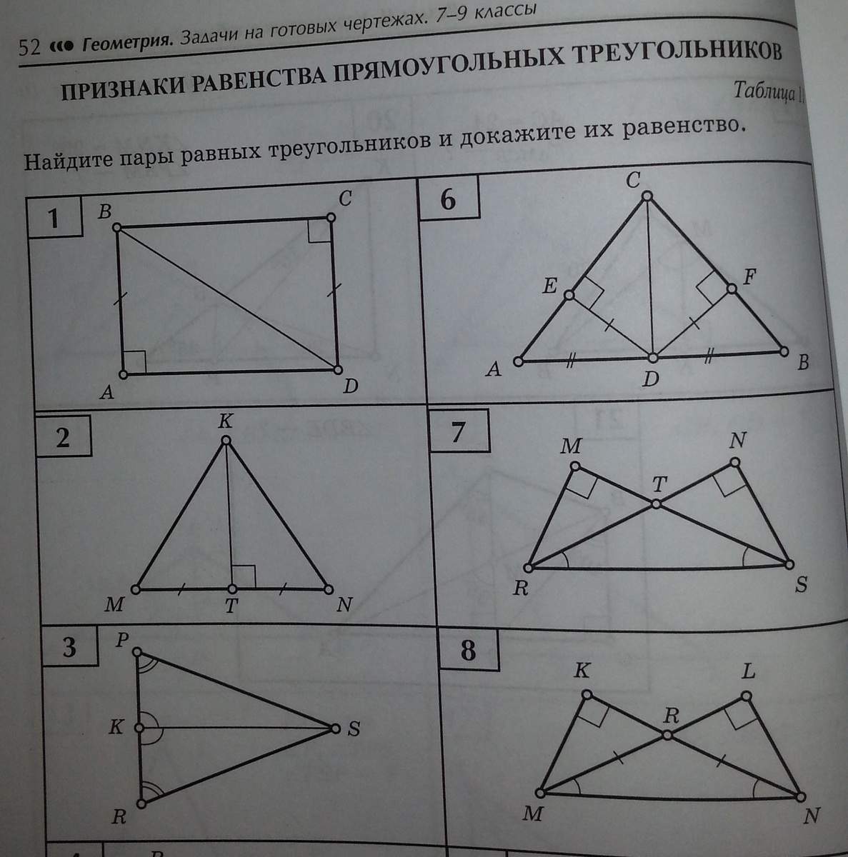 7) Треугольники RMS=SNR, так как гипотенуза RS - общая, а углы NRS и MSR равны (по гипотенузе и острому углу).