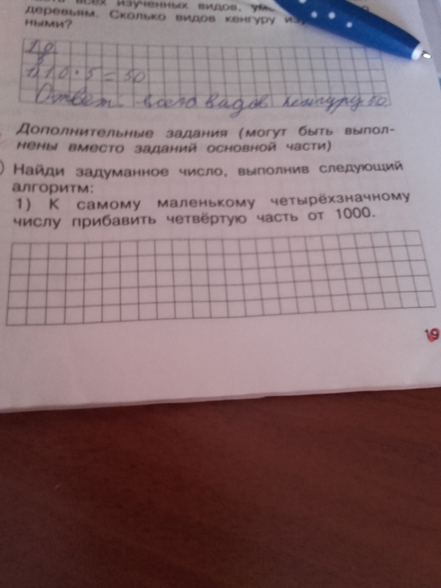 к самому маленькому четерехзначному числу прибавили четвёртую часть от 1000