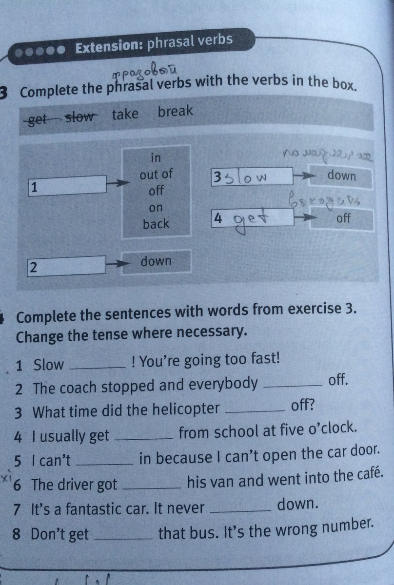 Ребятки, тут нужна помощь с фразовыми глаголами!(15б)